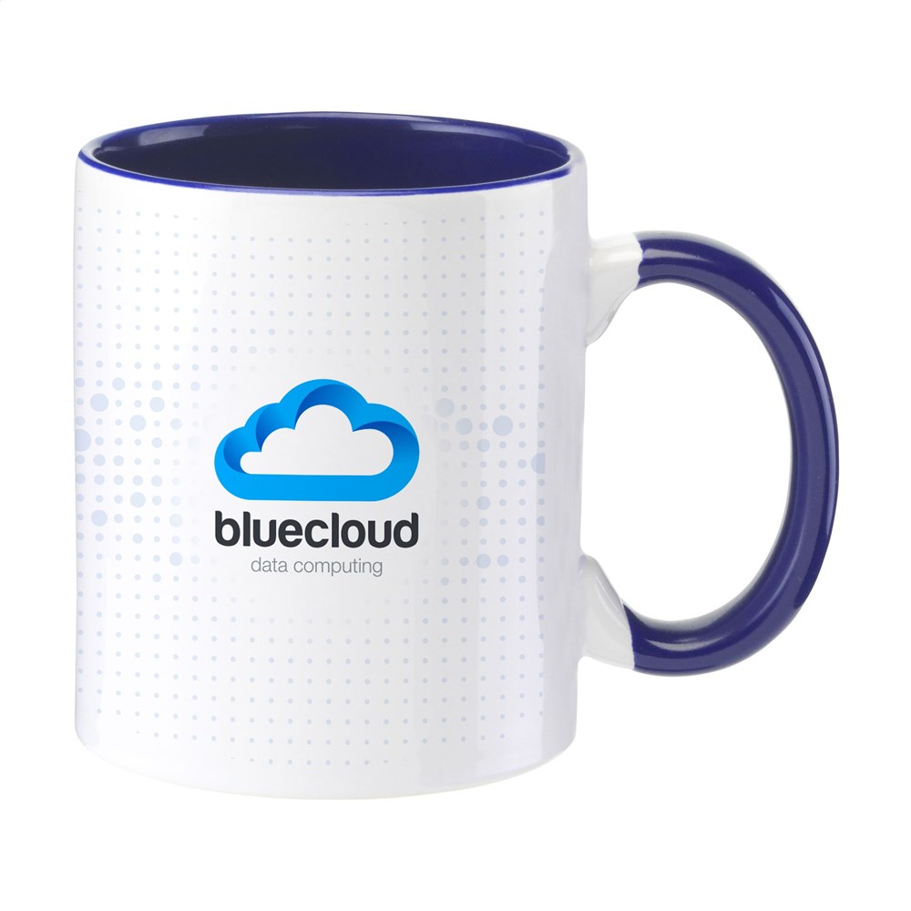 Hochwertiger Becher aus Keramik mit farbiger Innenseite. Die Farbe des großzügigen Henkels gleicht der Farbe der Innenseite, was für einen spezielen Effekt sorgt. Die perfekte Tasse für alle Drucke in Full Colour, auch Fotos. Spühlmaschinegeeignet. Fassungsvermögen 350 ml.