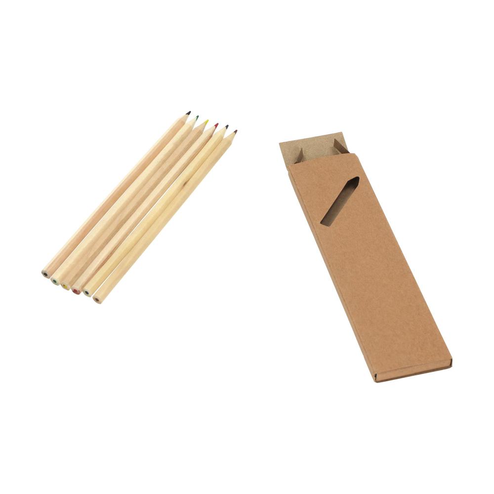 Lange Farbstifte, unlackiert und als 6er Set im Karton verpackt. Die Stifte sind alle sechseckig. mehr