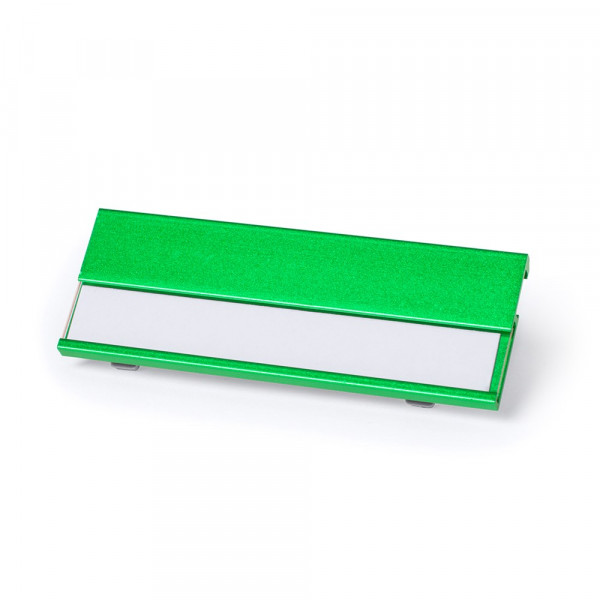 Aluminium-Namensschild in lebendigen Farben mit Befestigungsnadel auf der Rückseite. mehr