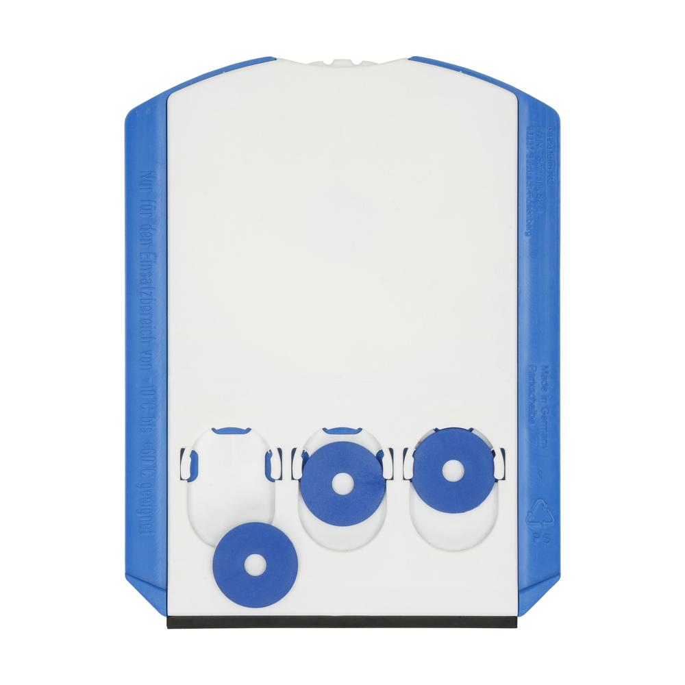 Kunststoff-Parkscheibe mit glatter Kratzkante, Kratzzacken und Wasserabstreifer. Auf der Rückseite befinden sich 3 Halterungen für Einkaufswagenchips oder 1 Euro Münzen. Standardmäßig mit 3 bunt gemischten Chips bestückt, Wunschfarben auf Anfrage. Entspricht Paragraph 42 StVO. Einsetzbar von -10°C bis +60°C. Auf Anfrage auch in verschiedenen Sprachvarianten erhältlich.