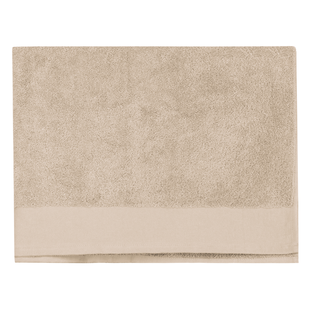 100 % Baumwolle. Dieses Handtuch besteht zu 100 % aus biologischer Baumwolle. Boucléwolle und flacher Terry-Handtuchrand 8 cm (eine Seite) für eine optimale Veredelung. Größe: 100 x 150 cm.