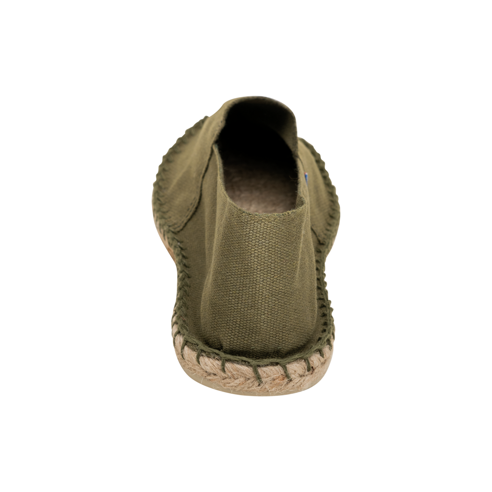 100 % Baumwolltuch. Sohlen aus vulkanisiertem Kautschuk und Jute. Hergestellt in Frankreich.
