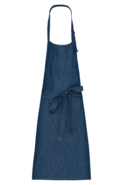 65 % Polyester / 35 % Baumwolle (Denim, Black Denim 65 % Baumwolle / 35 % Polyester). Heimwäsche bei 60 °C. Mit einer Metallschnalle am Hals lässt sich die Länge der Schürze regulieren. Ohne Tasche. Größe: H 90 cm x L 76 cm.