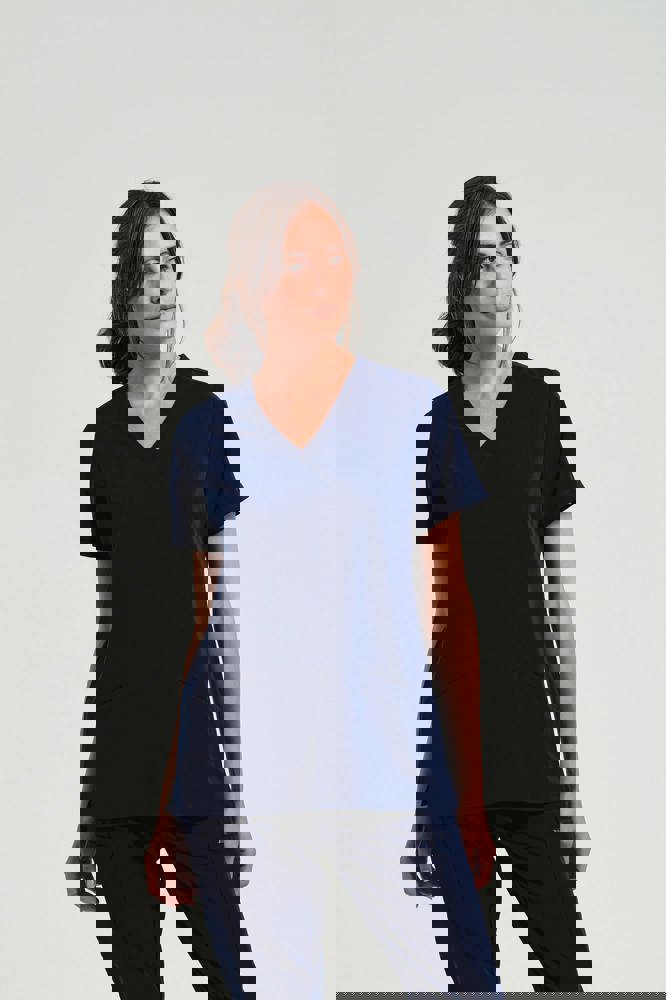 42 % Polyester/33 % recycelter Polyester/19 % Viskose/6 % Elasthan. V-Ausschnitt. 2 Große... mehr