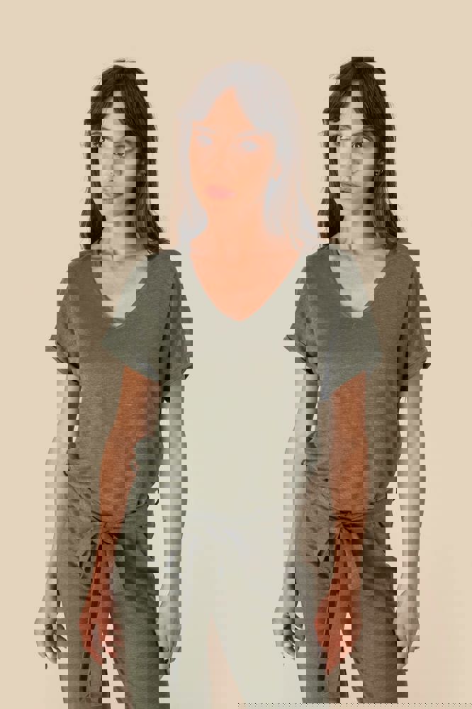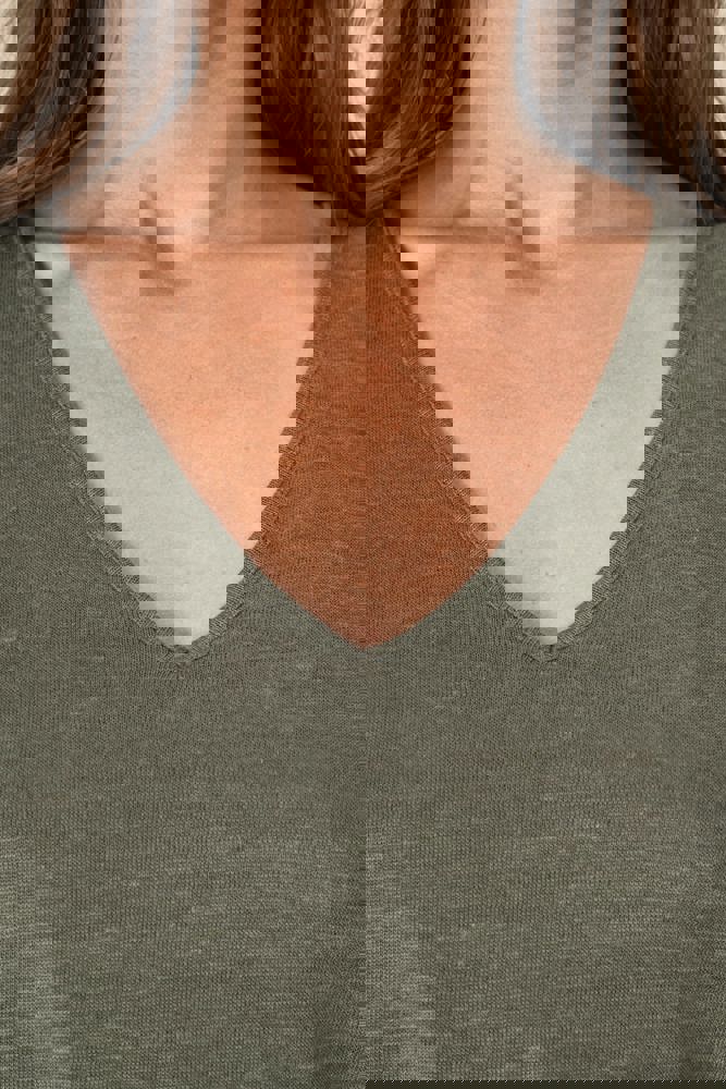 100% Leinen. Strick. Bequemer Schnitt mit überschnittener Schulterpartie. V-förmiger... mehr
