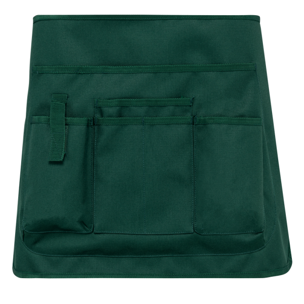 100 % Polyester. Aus 100 % recyceltem Polyester. Beschichteter, vollständig wasserdichter Oxford-Stoff mit 4.000 mm. 2 Taschenebenen: 1 großes Fach in der Mitte + 4 Fächer, wobei eines ein doppeltes Fach mit Klappe und Klettverschlussband hat. Ton-in-Ton Schrägband. Band und Verstellriemen aus recyceltem Kunststoff zum Verstellen der Größe der Schürze. Gesamtlänge der Schürze = 35 cm. Breite des Schürzenoberteils = 54 cm. Abtrennbares Etikett.