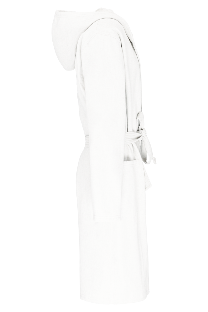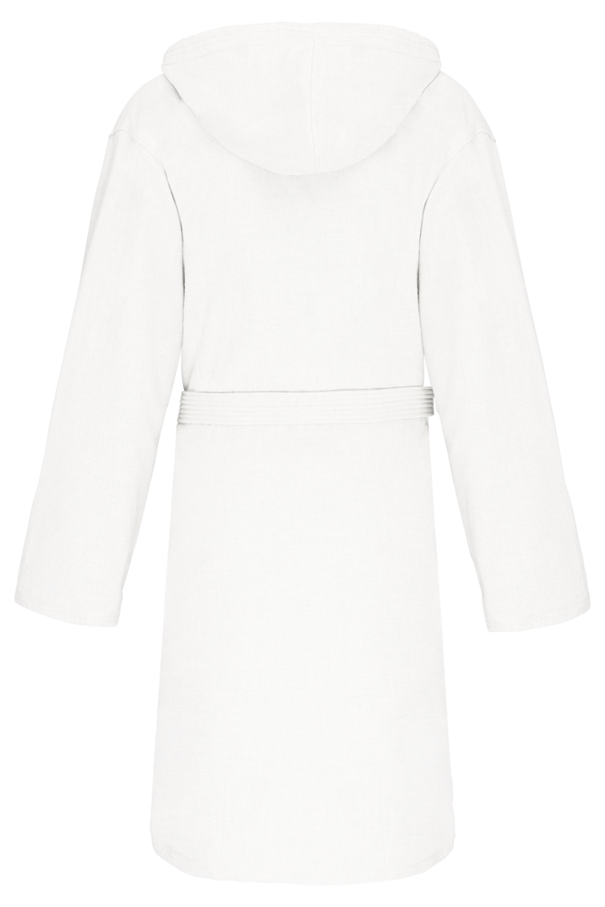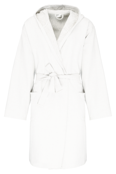 100 % Baumwolle. Alle Farben werden aus biologischer Baumwolle hergestellt. Terry-Strick. Angenehm und weich. Große Kapuze. Zwei aufgesetzte Taschen mit Verstärkungsziernaht oben an den Taschen. Bund mit Gürtelschlaufen. Befestigungshaken im Kragen. Doppelnähte an Kapuzensaum sowie Ärmelbündchen und Saum. Gerader Saum und Ärmelabschlüsse.