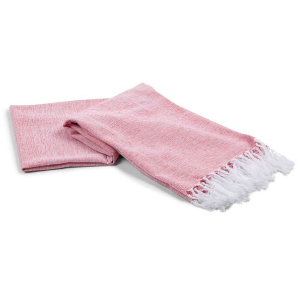 Ein hübsches Hamamtuch mit Fransen, hergestellt aus 70% recycelter Baumwolle. Die farbigen Fäden sind mit weißen gemischt, um einen gemischten Eindruck zu vermitteln.