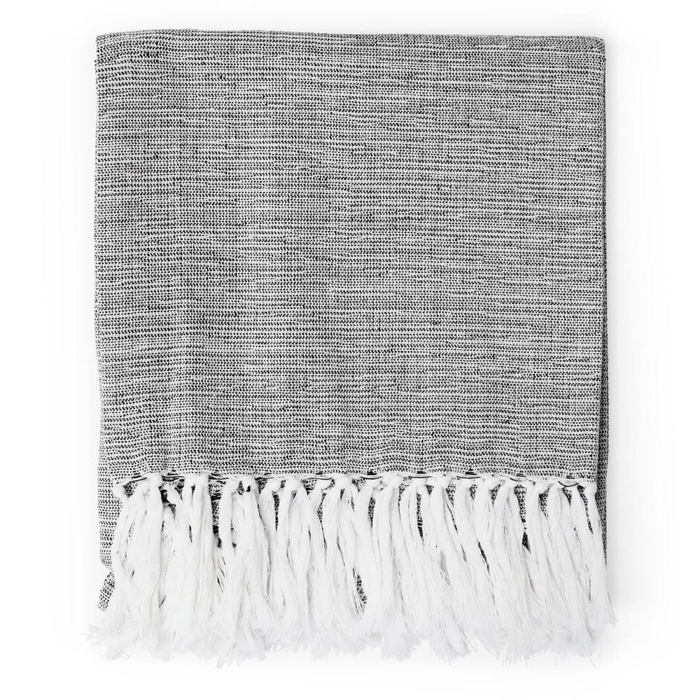 Ein hübsches Hamamtuch mit Fransen, hergestellt aus 70% recycelter Baumwolle. Die farbigen Fäden sind mit weißen gemischt, um einen gemischten Eindruck zu vermitteln.