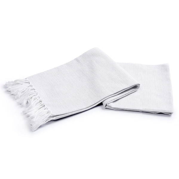 Ein hübsches Hamamtuch mit Fransen, hergestellt aus 70% recycelter Baumwolle. Die farbigen Fäden sind mit weißen gemischt, um einen gemischten Eindruck zu vermitteln.