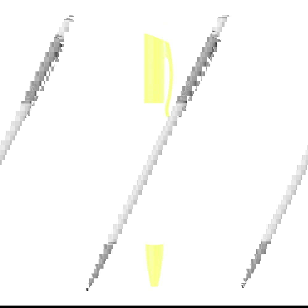Der Hardcolour Kugelschreiber Kamal hat eine große Druckfläche auf dem Clip und dem Schaft. Eine ansprechende Kombination aus weißem Schaft und weißem Drücker sowie einem farbigen Clip. Druckkugelschreiber ausgestattet mit einer blau schreibenden X20-Refill-Mine. Der Stift besteht aus ABS-Kunststoff und wird in Europa hergestellt.