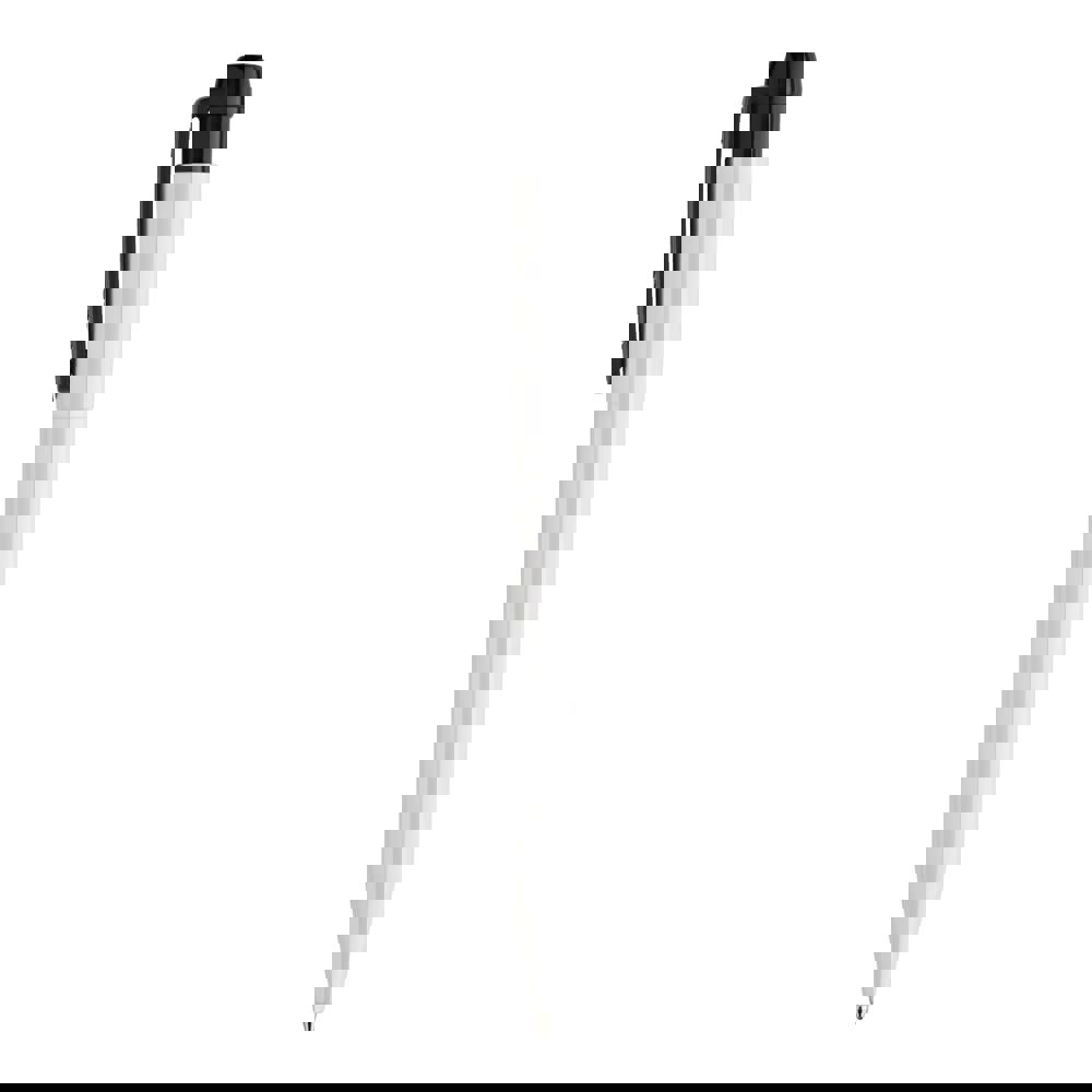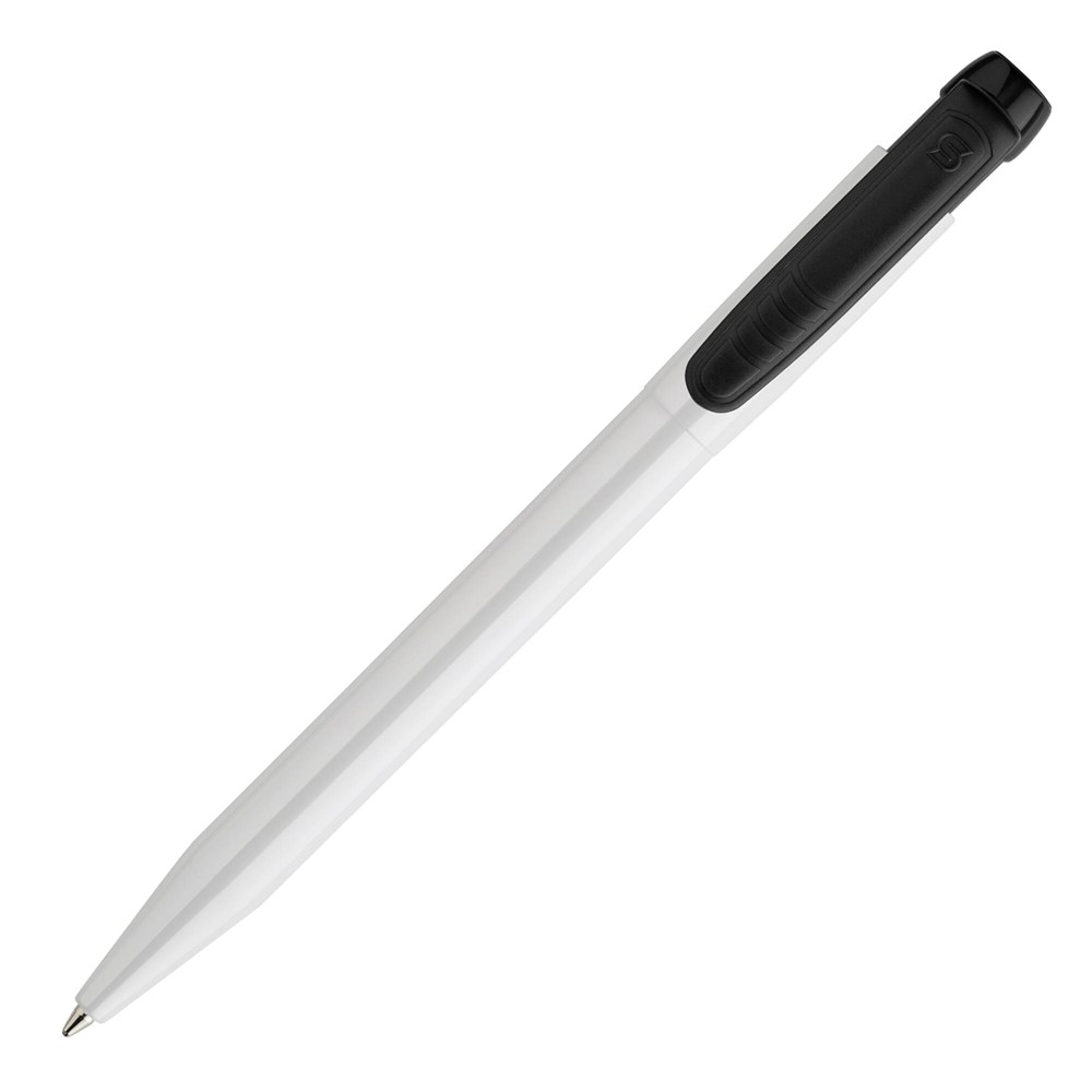 Schlanker weißer Hardcolour-Kugelschreiber mit farbigem Clip. Ein ansprechender Werbeartikel wegen seiner Druckfläche. Mit synthetischer blau schreibender X20-Refill-Mine. Druckkugelschreiber aus ABS, hergestellt in Europa. Ab einer Abnahmemenge von 5.000 Stück sind eigene Farbkombinationen möglich.