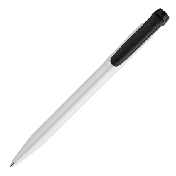 Schlanker weißer Hardcolour-Kugelschreiber mit farbigem Clip. Ein ansprechender Werbeartikel... mehr
