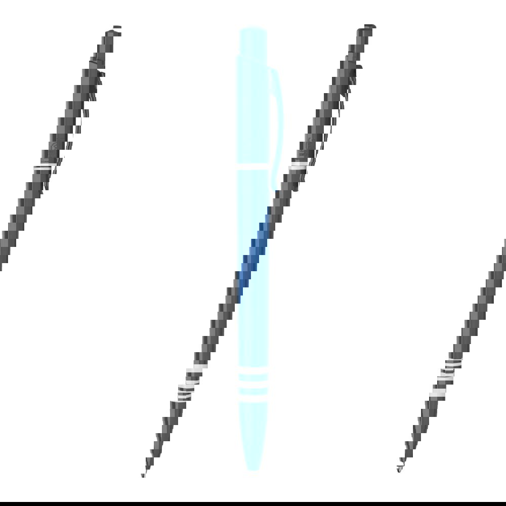Der Hardcolour Kugelschreiber Tropic-Color hat eine große Druckfläche auf dem Clip und dem Schaft. Mit farbigem Schaft, Drücker und Clip. Der Schaft hat drei farbige Ringe in Weiß. Druckkugelschreiber ausgestattet mit einer blau schreibenden Jumbo-Refill-Mine. Der Stift besteht aus ABS-Kunststoff und wird in Europa hergestellt. Ab einer Abnahmemenge von 5.000 Stück sind eigene Farbkombinationen möglich.