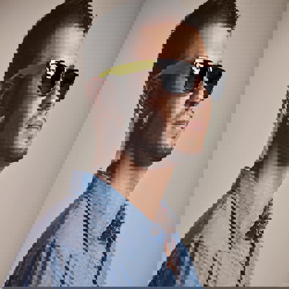 Moderne Sonnenbrille mit farbigen Bügeln und einem UV400-Filter. Hervorragende Wahl für ein... mehr