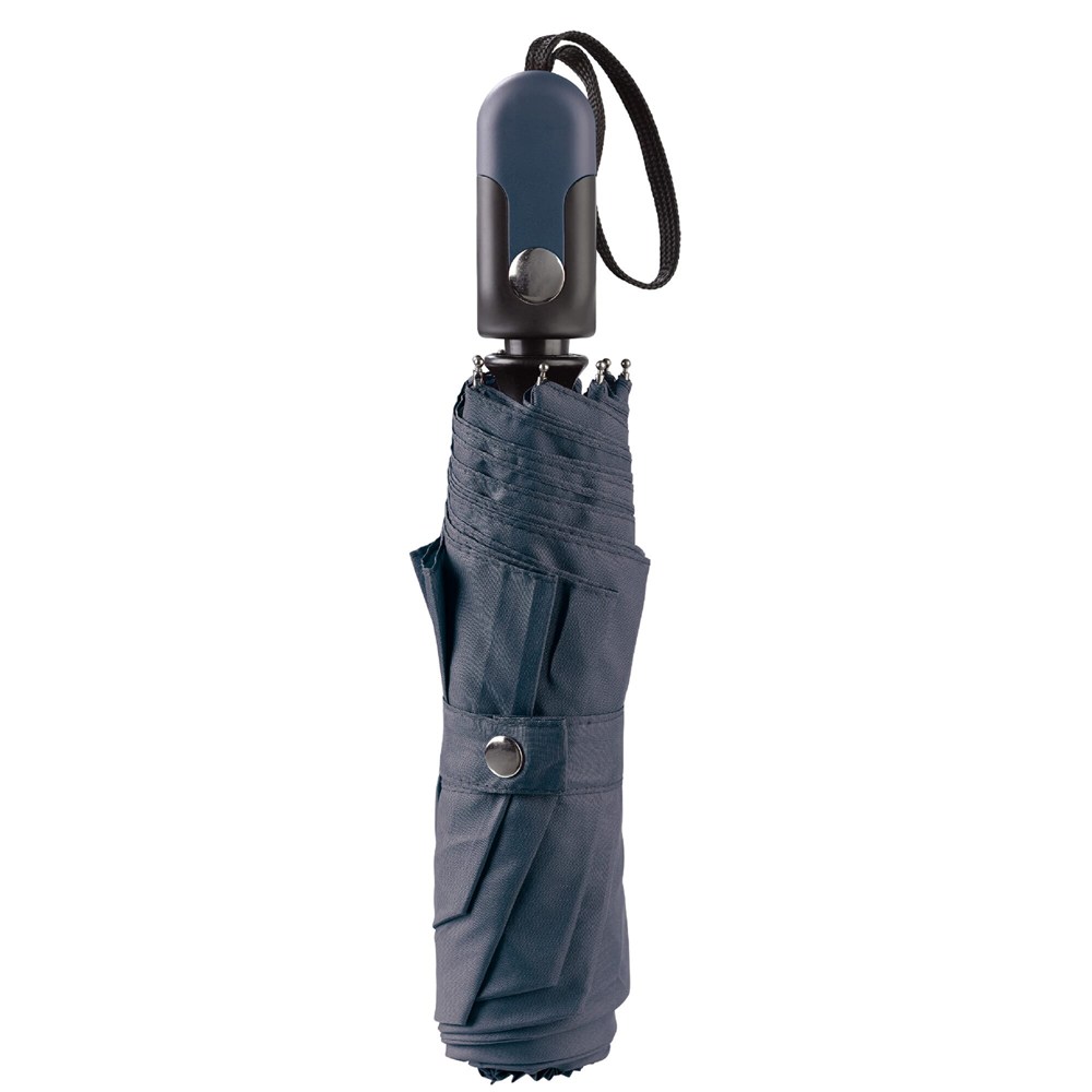 Luxuriöser, faltbarer Regenschirm im Business-Look & Feel. Der ergonomisch geformte Griff verfügt über einen Mechanismus zum automatischen Öffnen und Schließen des Schirms. Das Gestell ist teilweise aus Fiberglas gefertigt, was dem Schirm zusätzliche Stärke verleiht. Wird mit einer Hülle geliefert.