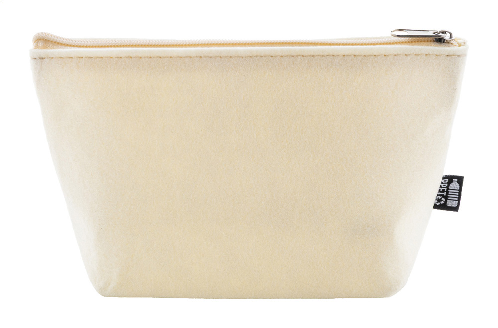 Kosmetiktasche aus RPET-Filz mit Reißverschluss. Mit RPET-Label.