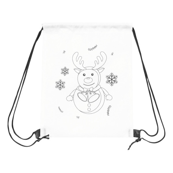 Bemalbarer Turnbeutel COLOURFUL SNOWMAN: mit Kordelzug und Weihnachtsmotiv zum Ausmalen auf der Vorderseite, inkl. 3 verschiedenfarbigen Wachsmalstiften (rot, grün, blau)