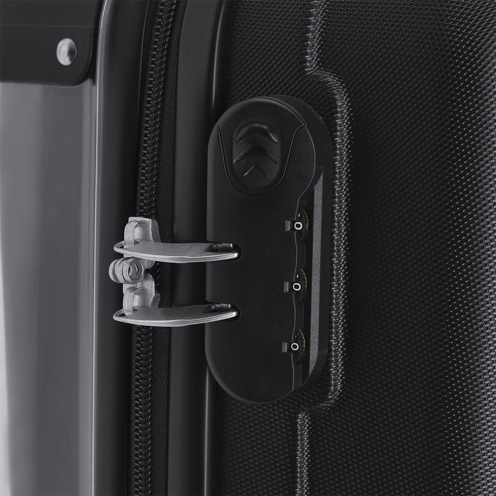 Trolley, ideal zur Personalisierung mit eigenem Design. Mit transparenter PC-Frontabdeckung, die das einfache Einfügen des gewünschten Designs ermöglicht und maximale Sichtbarkeit bietet. Rückseite aus robustem schwarzem ABS, für Stärke und Langlebigkeit. Mit seitlichem Sicherheitskombinationsschloss und doppelten Reißverschluss-Ziehern. Innen mit Reißverschlussfach und Haltegurten. Mit Teleskopgriff und 4 drehbaren Rollen.