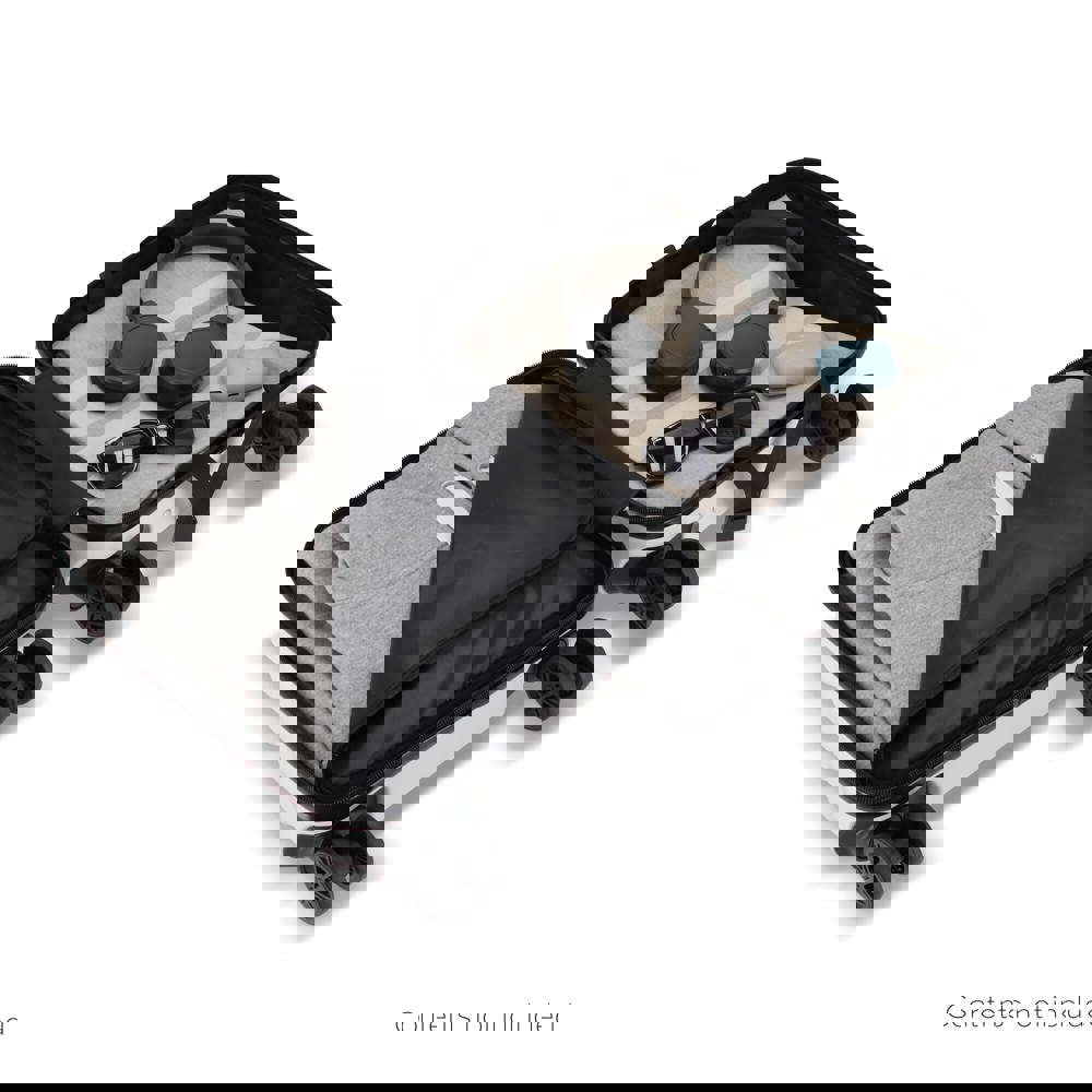 Dieser kompakte Kabinenkoffer wurde speziell für die Größenbeschränkungen vieler Billigfluglinien entwickelt und passt unter den Sitz. Dank seiner vier Lenkrollen ist er leicht und wendig. Ausgestattet mit einem Zahlenschloss und einer Handyhalterung im Griff macht dieser Koffer das Warten am Flughafen, Bahnhof oder Bahnsteig wesentlich angenehmer.