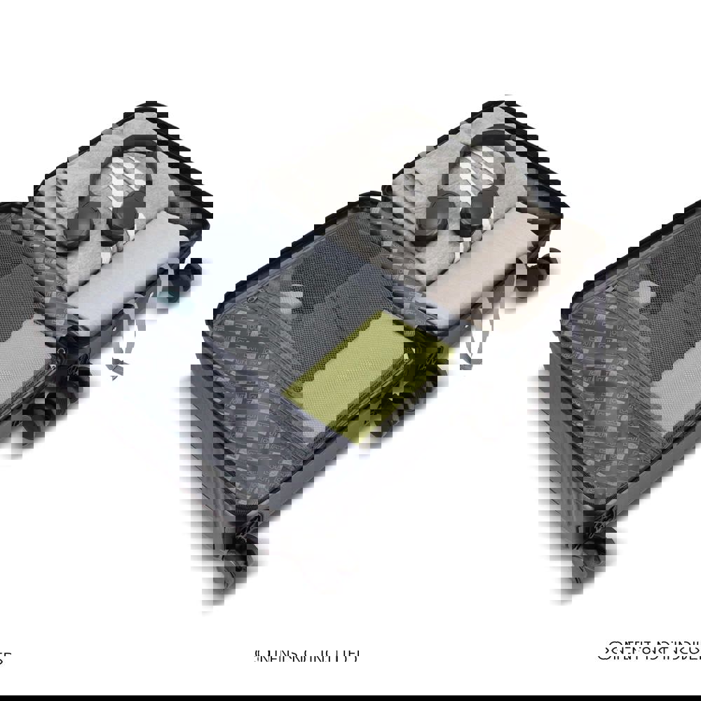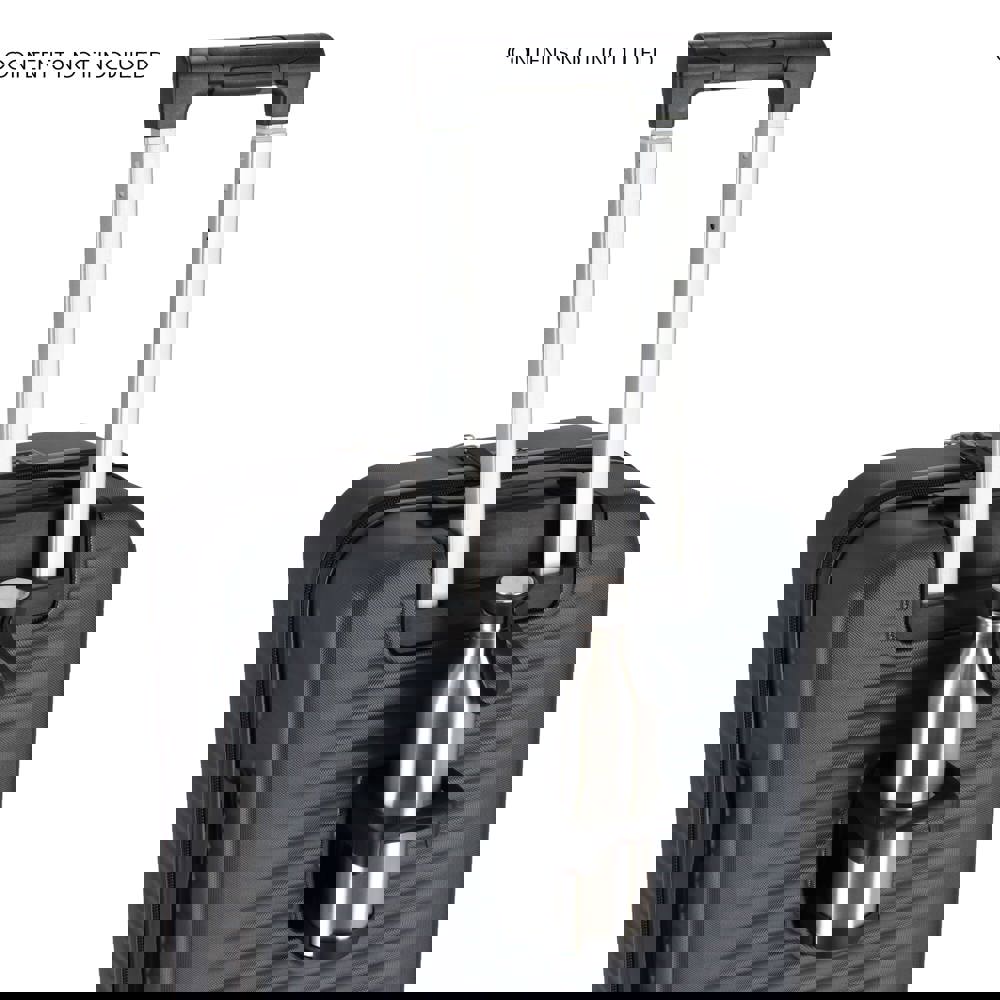 Der Rulla Kabinenkoffer von InSideOut bietet Komfort beim Reisen: vier Lenkrollen, TSA-Zahlenschloss, Handyhalterung im Griff, integrierter Getränkehalter hinten und zwei seitliche Haken für Tasche oder Nackenkissen. Im vorderen Fach eine gepolsterte Laptoptasche für Geräte bis 15,6 Zoll.