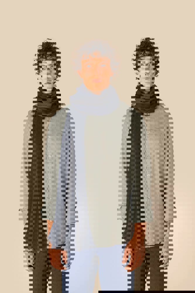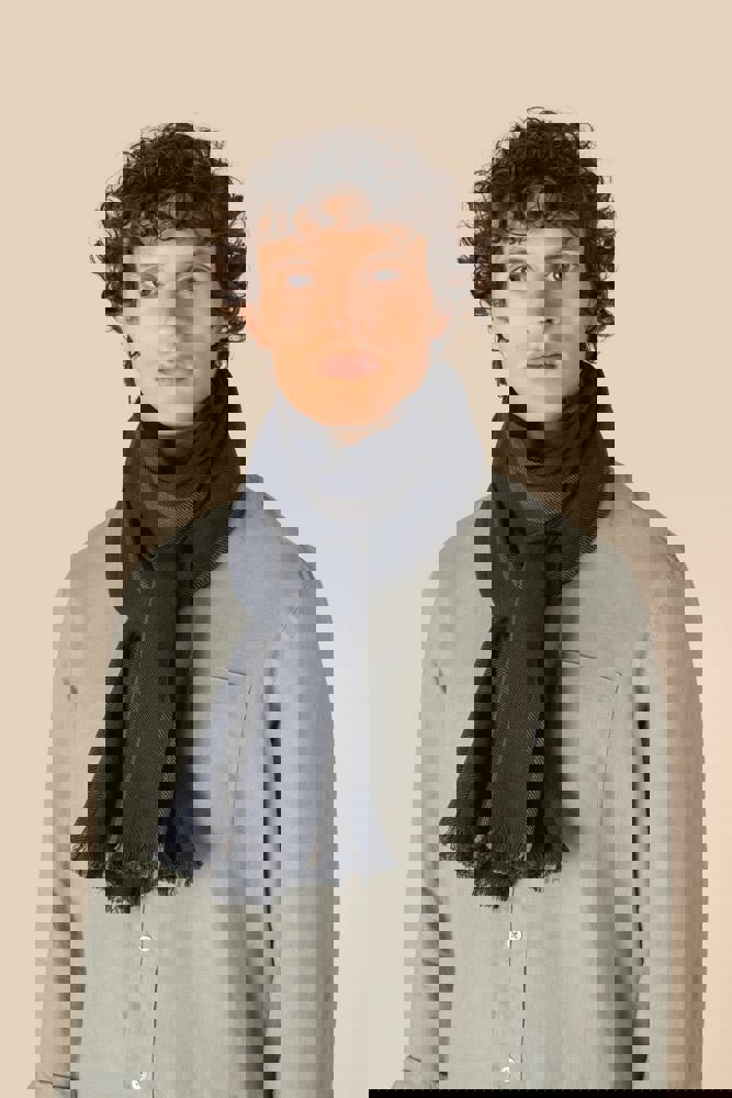 50 % Baumwolle, 50 % Viskose. Gewebtes Schal mit Fransen, verziert mit kontrastierenden Streifen in Marine und Beige. Unsere handgewebten Kopftücher können leichte Farbabweichungen von einem Stück zum anderen aufweisen, was ein Zeichen für unsere authentische Handwerkskunst ist.