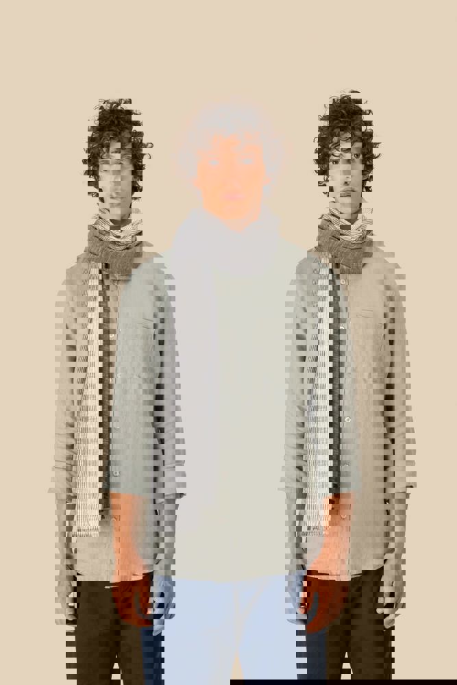 100 % Baumwolle. Gewebtes Schal mit Fransen, verziert mit breiten Streifen in Grautönen. Unsere handgewebten Kopftücher können leichte Farbabweichungen von einem Stück zum anderen aufweisen, was ein Zeichen für unsere authentische Handwerkskunst ist.