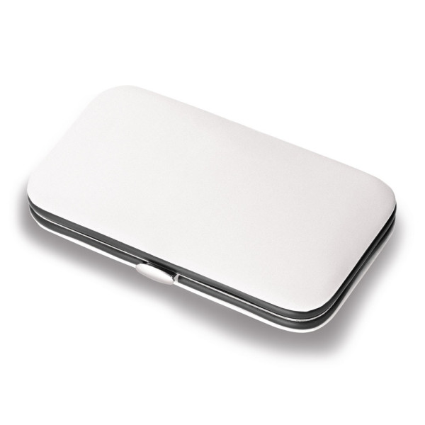 Maniküre Set (5teilig) bestehend aus einer Nagelfeile, einer Nagelschere, einer Nagelzange, einer Pinzette und einem Nagelhautschieber. Geliefert in einem Etui aus PU. 110 x 65 x 20 mm