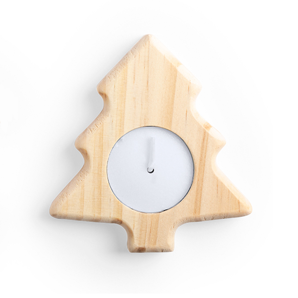 Weihnachtskerze aus Kiefernholz. Mutige Designs Stern und Weihnachtsbaum. Präsentiert in einer einzelnen weißen Box.