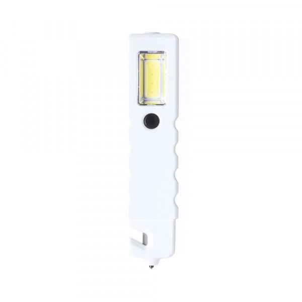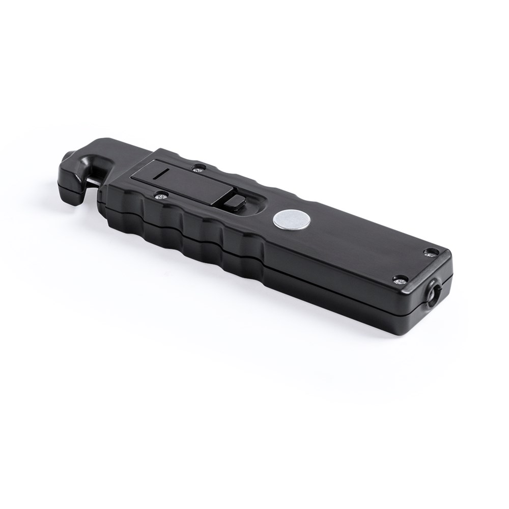 3-in-1 Notfallhammer mit LED-Taschenlampe mit 4 COB-LEDs und 3 Lichteinstellungen. Mit magnetischer Oberfläche und Gurtschneider.