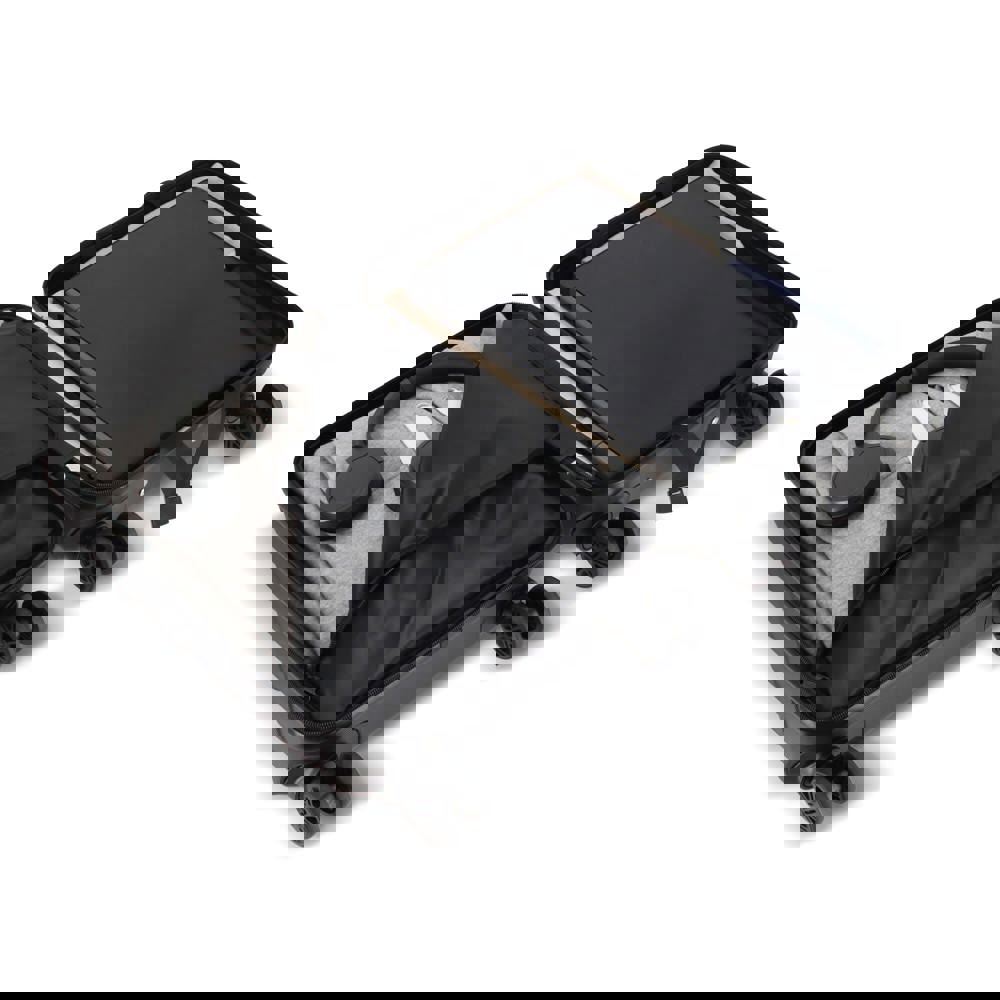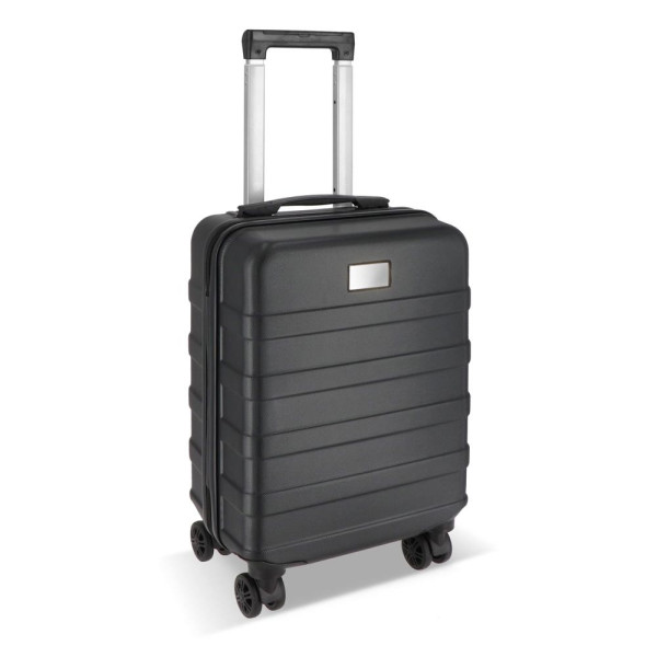 Dieser Kabinentrolley vereint Stauraum und Benutzerfreundlichkeit. Er passt in die meisten Flugzeugfächer und hält wichtige Utensilien griffbereit. Mit vier Lenkrollen, Zahlenschloss und Handyhalterung im Griff macht er das Warten am Flughafen, Bahnhof oder Bahnsteig deutlich angenehmer.