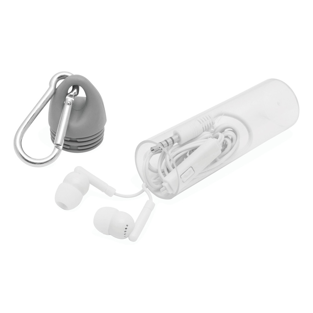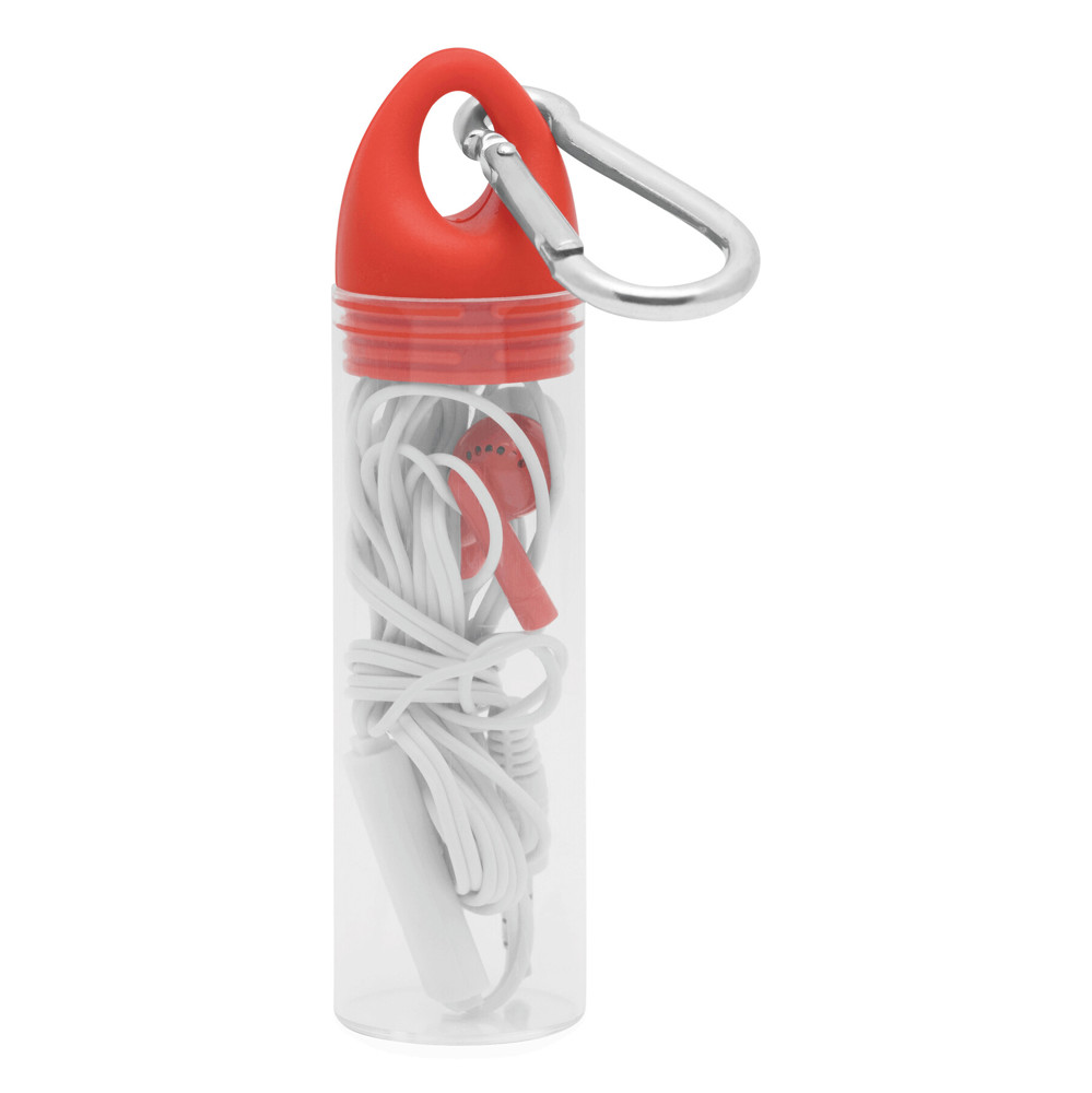 In-Ear-Kopfhörer LISTEN & TALK: inkl. integriertem Mikrofon und Taste für die Rufannahme, 3,5 mm Klinkenstecker, Kabellänge ca. 120 cm, im Kunststoffetui mit farblich passendem Verschluss und Karabinerhaken aus Aluminium (der Karabiner ist NICHT als Sicherung beim Klettern geeignet)