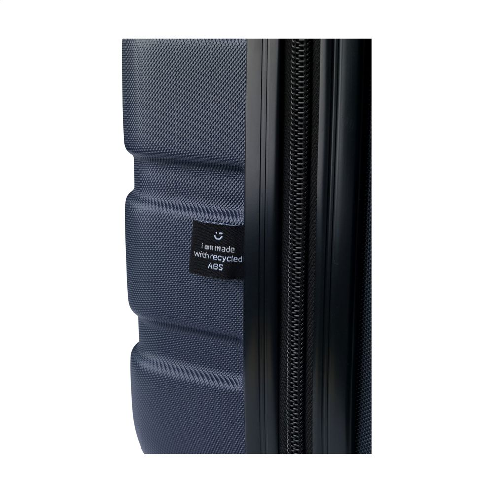 Trendiger, leichter Trolley aus 100% GRS-zertifiziert recyceltem ABS. Die Innenseite ist mit recyceltem 210D-Polyester ausgekleidet. Mit geräumigem Hauptfach, 4 Rädern, erweitertem Metalgriff und Zahlenschloss. GRS-sertifisert. Totalt resirkulert materiale: 52%. Fassungsvermögen ca. 30 Liter.
