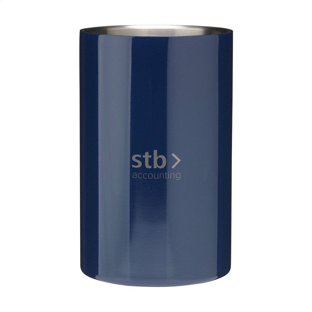 Doppelwandiger Weinkühler aus recyceltem Edelstahl. Dieser elegant gestaltete Kühler hält eine Flasche Wein oder Champagner auf der perfekten Temperatur. RCS-zertifiziert. Gesamtes recyceltes Material: 45%. Edelstahl kann viele Male recycelt werden – die Qualität des Materials bleibt dabei weitgehend erhalten. Durch die Verwendung von recyceltem Edelstahl kommt eine geringere Menge an neuen Rohstoffen zum Einsatz. Das bedeutet weniger Energieverbrauch und weniger Wasserverbrauch. Verpackt pro Stück.