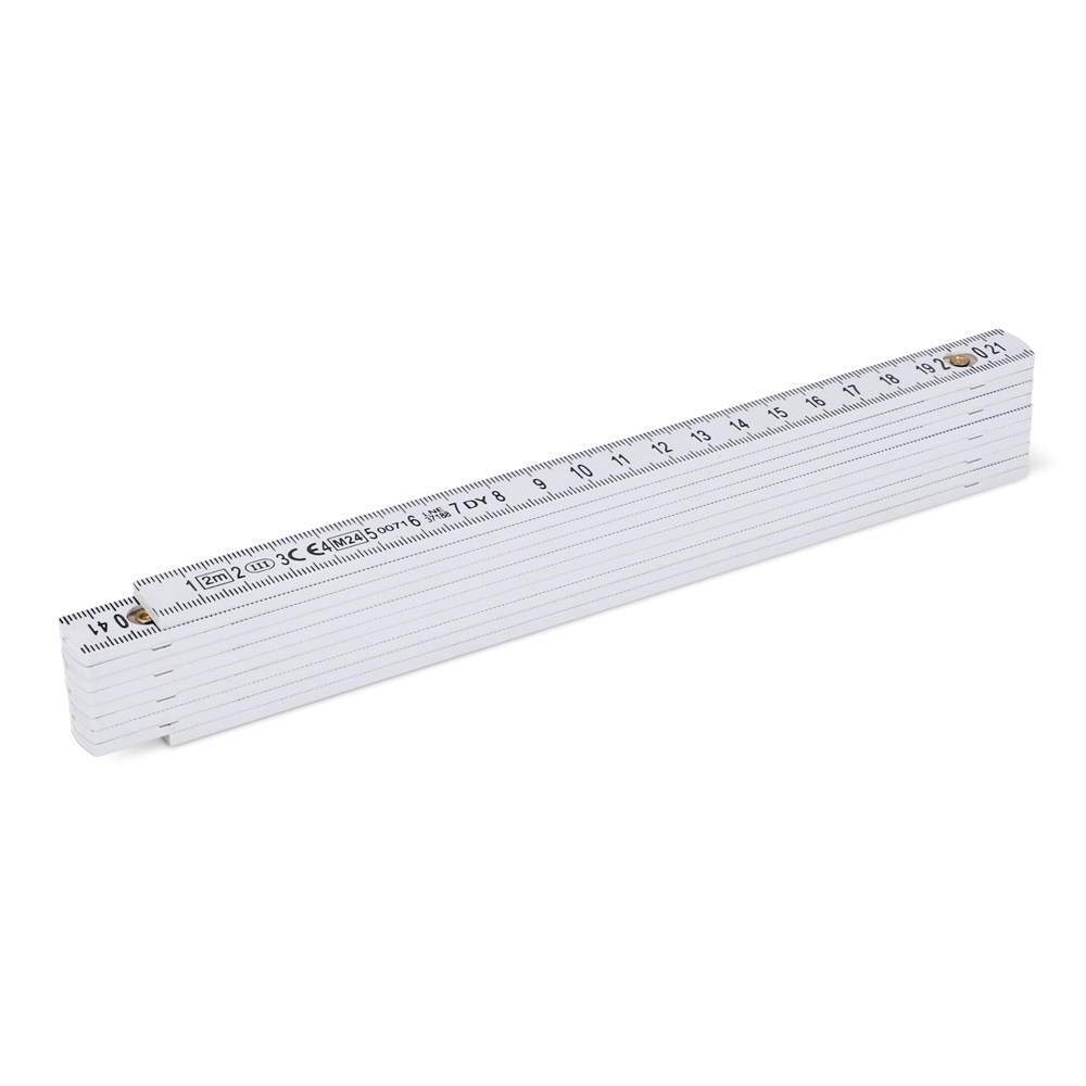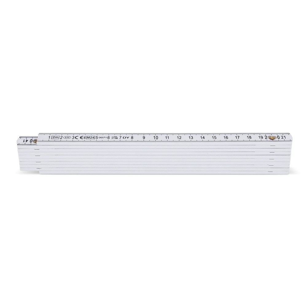 Kalibrierter Zollstock mit einer Gesamtlänge von 2 Metern. Dieses Zollstock entspricht den Anforderungen der Europäischen Messgeräterichtlinie (MID 2014/32/EU), Klasse 3. Das bedeutet, dass der Zollstock gemäß den europäischen Richtlinien für hohe Messgenauigkeit zertifiziert ist.