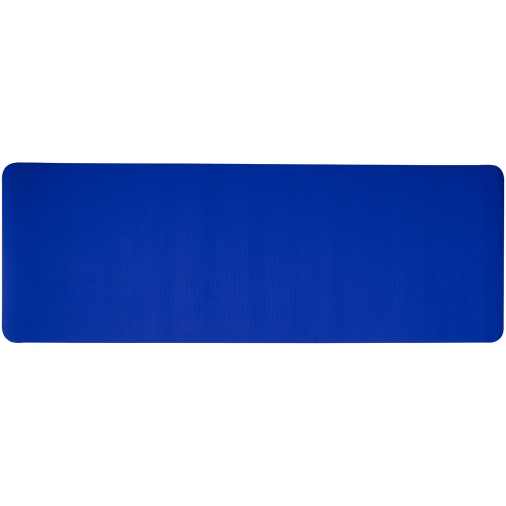Yogamatte aus recyceltem TPE Kunststoff. TPE ist von Natur aus rutschfest und bietet eine stabile Oberfläche, die ein Ausrutschen bei den Yogapositionen verhindert. Die Verwendung von recyceltem TPE bei der Herstellung von Yogamatten trägt zur Abfallvermeidung bei und fördert die ökologische Nachhaltigkeit, indem die Verwendung von neuem Kunststoff minimiert wird. Größe 173 × 61 × 0,6 cm. Die Hülle ist aus RPET.