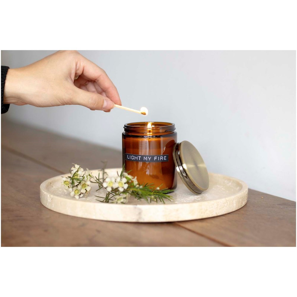 Eine mittelgroße, nach Zedernholz duftende Kerze in einem braunen Glas mit einem Messingdeckel. Die Duftkerze hat eine Brenndauer von bis zu 35 Stunden und kann zur Aufbewahrung von Wattepads oder zum Pflanzen eines niedlichen Mini-Kaktus wiederverwendet werden. Das Produkt wird in den Niederlanden aus 100 % Rapswachs handgefertigt. Geliefert in einem Baumwollbeutel. Das Etikett/ der Spruch auf dem Glas kann variieren.
