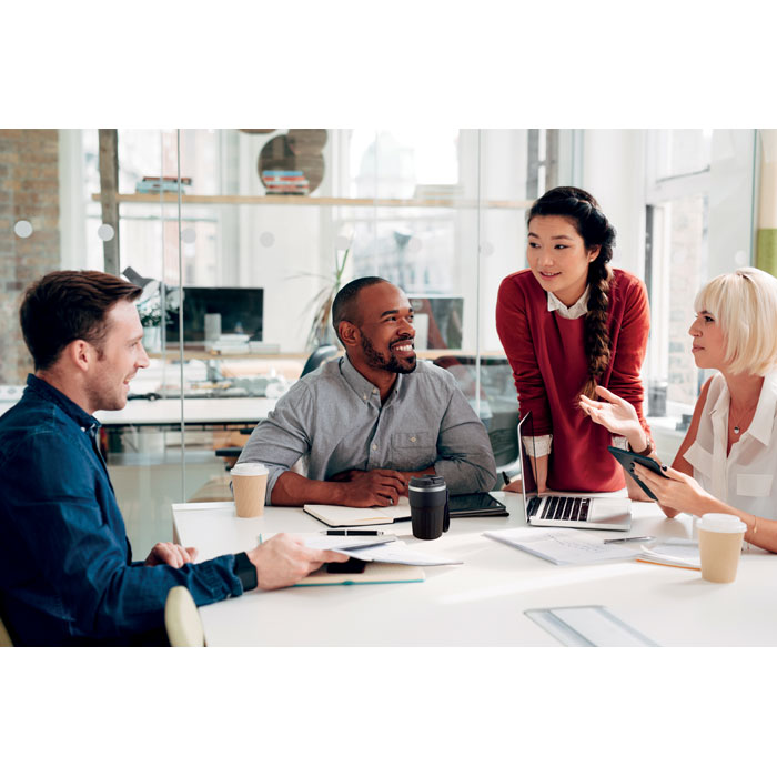 3-teiliges Geschenkset: DIN A5 Notizbuch, Kugelschreiber aus recyceltem Aluminium, doppelwandiger Becher aus recyceltem Edelstahl mit PP-Deckel (350 ml). Lieferung in Geschenkbox.