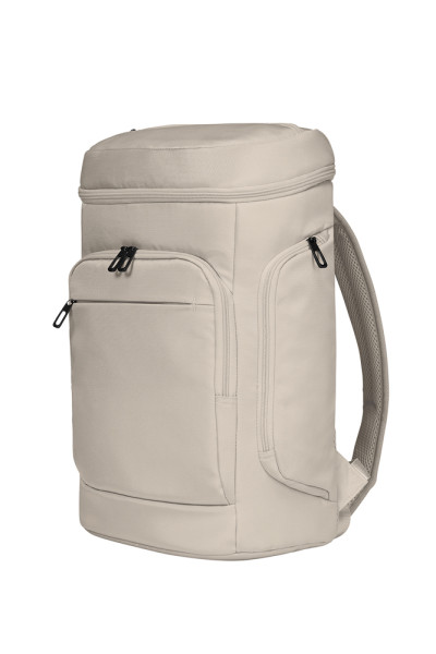 hochwertiger, moderner Notebook-Rucksack mit recyceltem Oberstoff; voll gepolstertes Hauptfach mit dreiseitig umlaufendem 2-Wege-Reißverschluss für komfortables Packen; helles Innenfutter für optimale Übersicht; große, gepolsterte Vortasche mit 2-Wege-Reißverschluss und Isolierwirkung, ideal z. B. für Lunchbox; zusätzlich flaches Reißverschluss-Vorfach; flaches Reißverschluss-Deckelfach; zwei Reißverschluss-Seitentaschen; innen: gepolstertes Notebookfach mit Befestigungslasche; verdecktes AirTag-Fach, Reißverschluss-Netzfach; rückseitig ergonomisch gepolstertes Tragesystem mit höhenverstellbarem Brustgurt; Befestigungsschlaufe für Trolley-Gestänge; Handgriff
