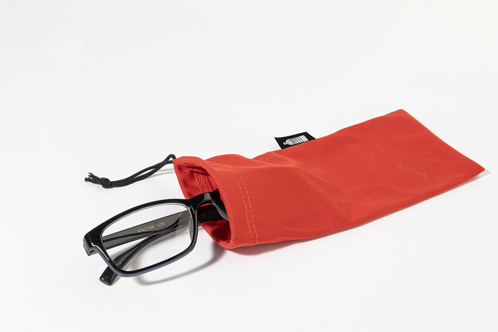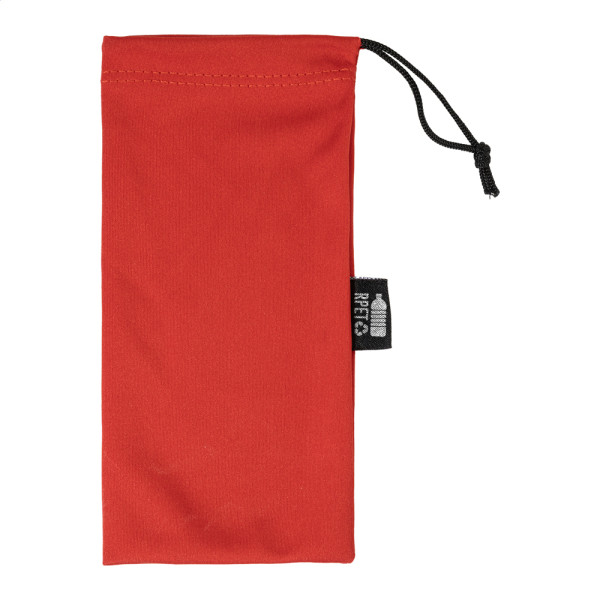 Sonnenbrillenetui aus RPET-Polyester mit Kordelzugverschluss.