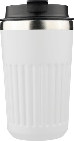 Reisebecher (400 ml) aus recyceltem Edelstahl mit doppelwandiger Oberfläche und Rillen an der... mehr