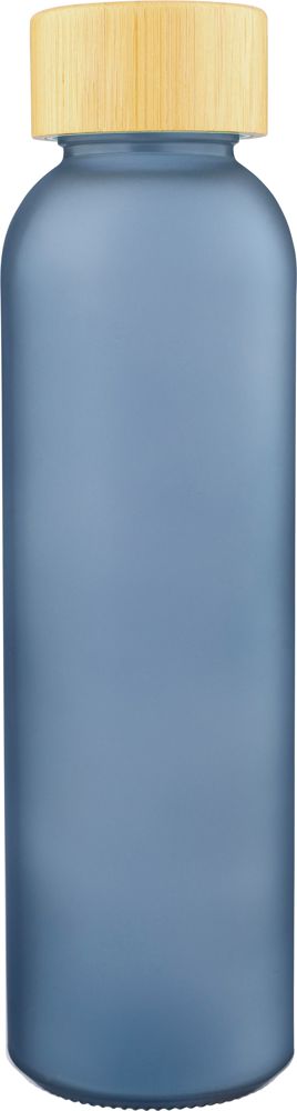Glas-Trinkflasche (500 ml) mit mattiertem Körper und Schraubverschluss aus Bambus mit PP-Innenkern. Sie ist aus Natrium-Kalzium-Glas hergestellt und nur für kalte Getränke geeignet. Die Flasche ist einzeln in einem braunen Karton verpackt.