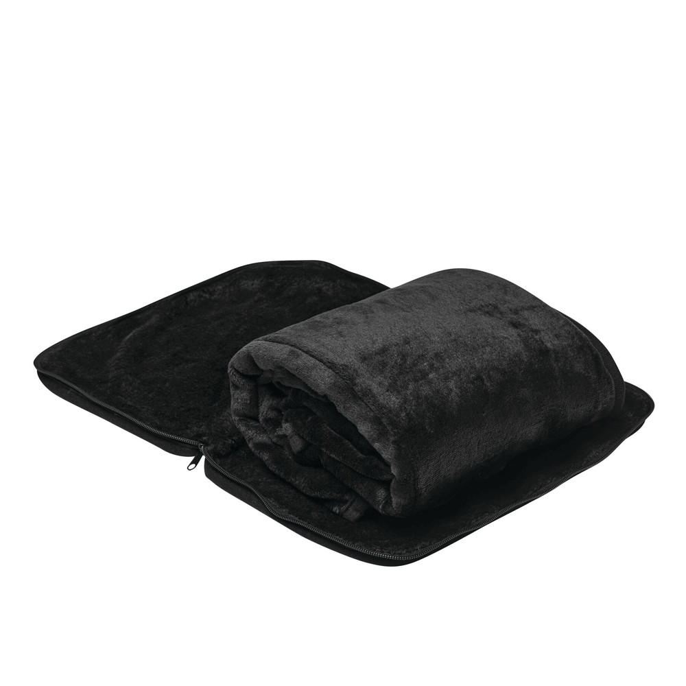 Reisedecke PURENAP: aus 100% rPET, weiches Wohlfühlerlebnis durch Plüschfleece, waschbar, in Tasche mit Reißverschluss zum Verschließen, Schlaufe mit kleinem Karabinerhaken (der Karabiner ist NICHT als Sicherung beim Klettern geeignet) und Gurt für Reporterfunktion, Decke lässt sich zusammengefaltet in der Tasche optimal als Kissen verwenden