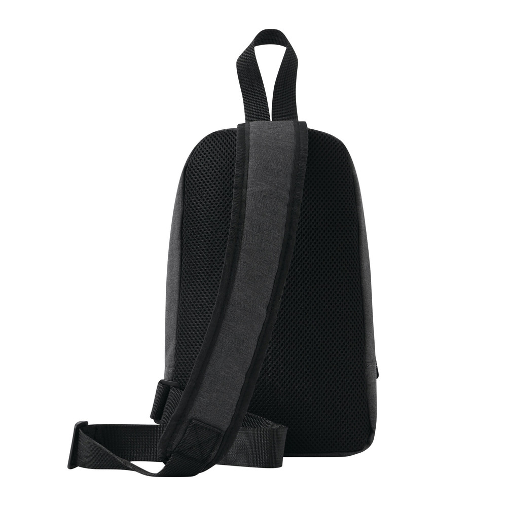 Umhängetasche EDERN: aus recyceltem Polyester (RPET), Reißverschluss-Hauptfach mit Einsteckfach, Reißverschluss-Vorfach, Trageschlaufe, gepolsterter und verstellbarer Schultergurt, gepolsterter Rückenbereich
