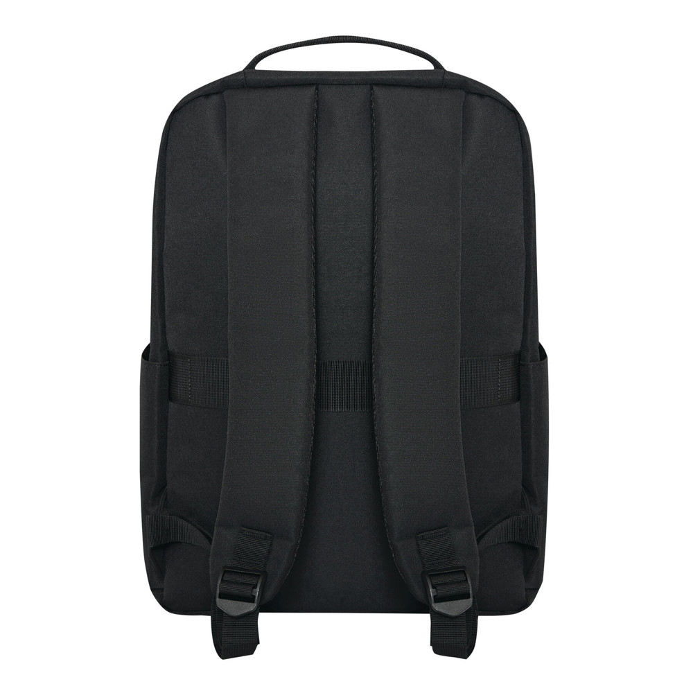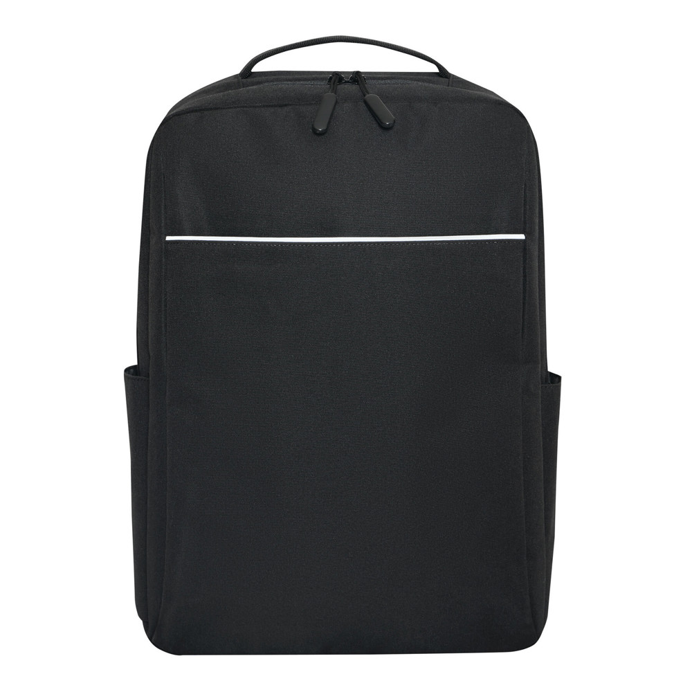 Rucksack GHENT: aus recyceltem Polyester (RPET), 1 Reißverschluss-Vorfach mit Reflektorstreifen, Reißverschluss-Hauptfach mit gepolstertem Innenfach für Laptop oder Tablet, Organizer mit 4 Steckfächern, 2 seitliche Einsteckfächer, gepolsterter Tragegriff, gepolsterte und verstellbare Schultergurte, Gurt als Reporterfunktion auf der Rückseite