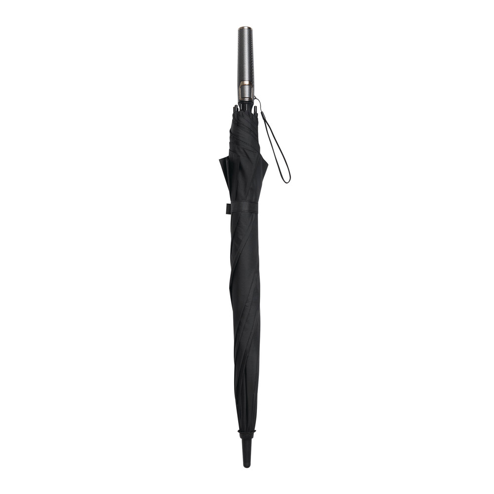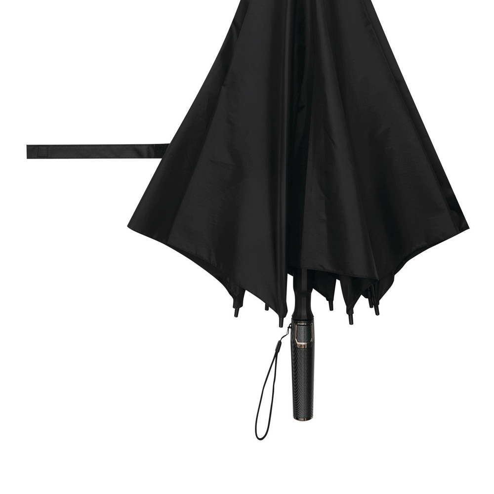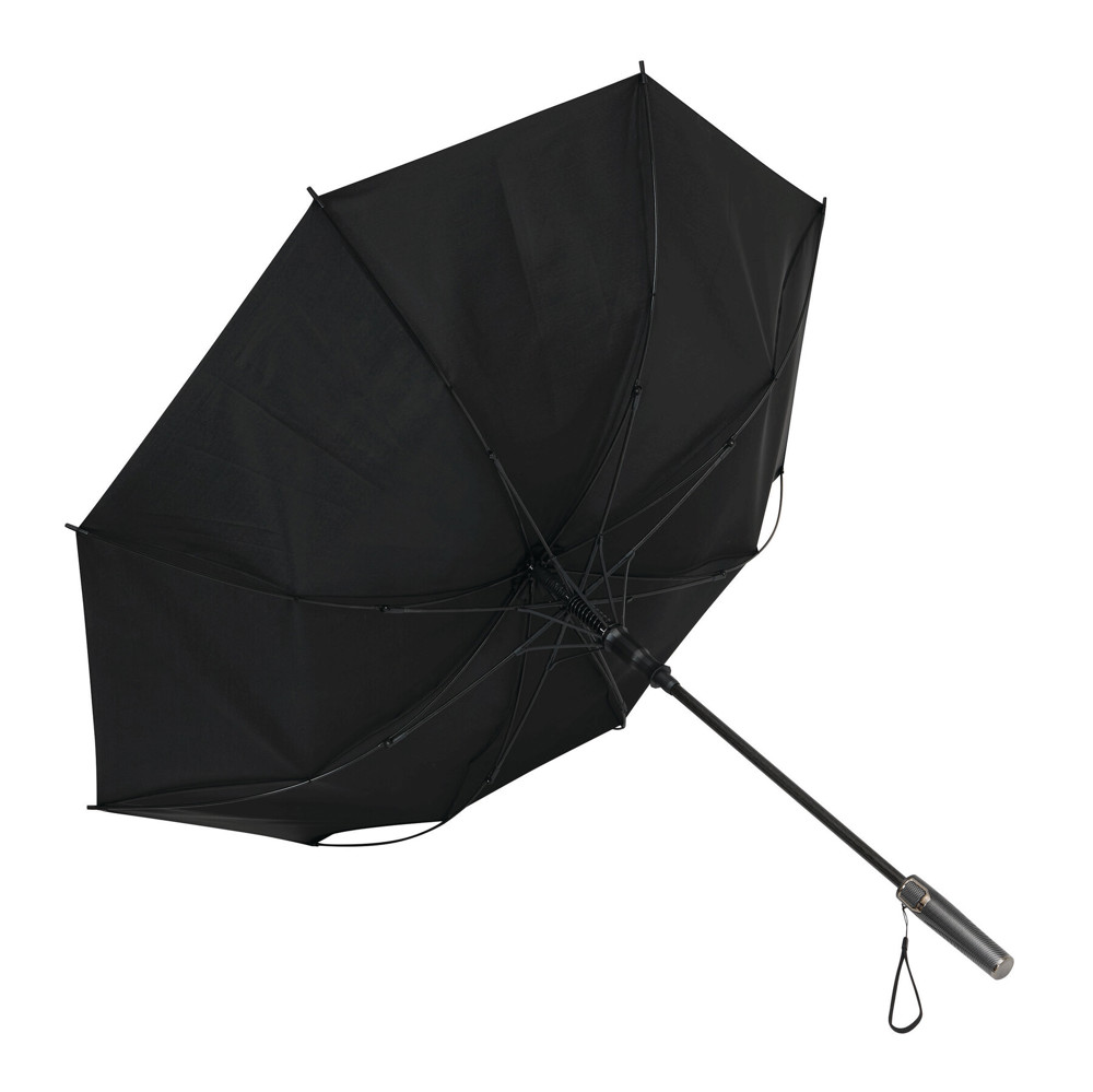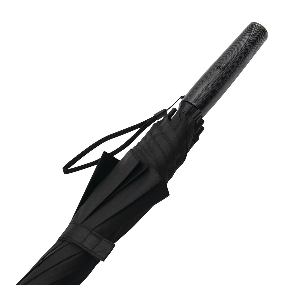 Automatik-Stockschirm BLIZZARD: Fiberglasstock, Fiberglasspeichen und Kunststofftips, Kunststoff-Griff in Carbon-Optik mit integrierter Automatik-Auslösetaste und Handschlaufe, hochwertige Polyester-Pongee-Bespannung, Schließband mit Druckknopf