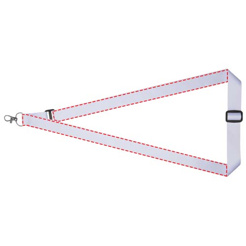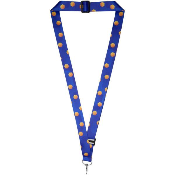 Verstellbares Lanyard mit Schiebeschnalle zum einfachen Verstellen der Länge und einem stabilen Metallhaken zum sicheren Befestigen von Namensschild, Ausweis oder Schlüsseln. Es kann ein- oder beidseitig bedruckt werden, wahlweise mit Standard- oder angepasster beidseitiger Bedruckung (eine angepasste Bedruckung gewährleistet, dass das Design auf beiden Seiten übereinstimmt). Hergestellt in Europa.