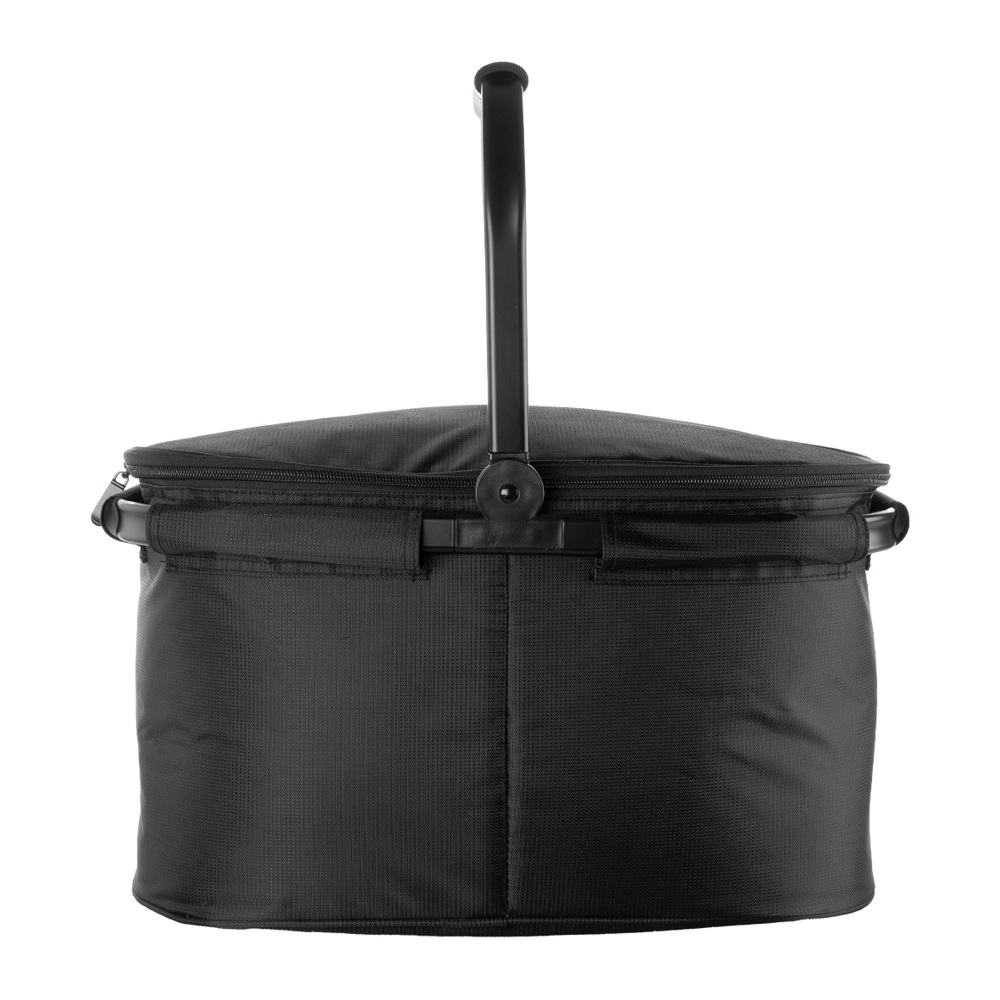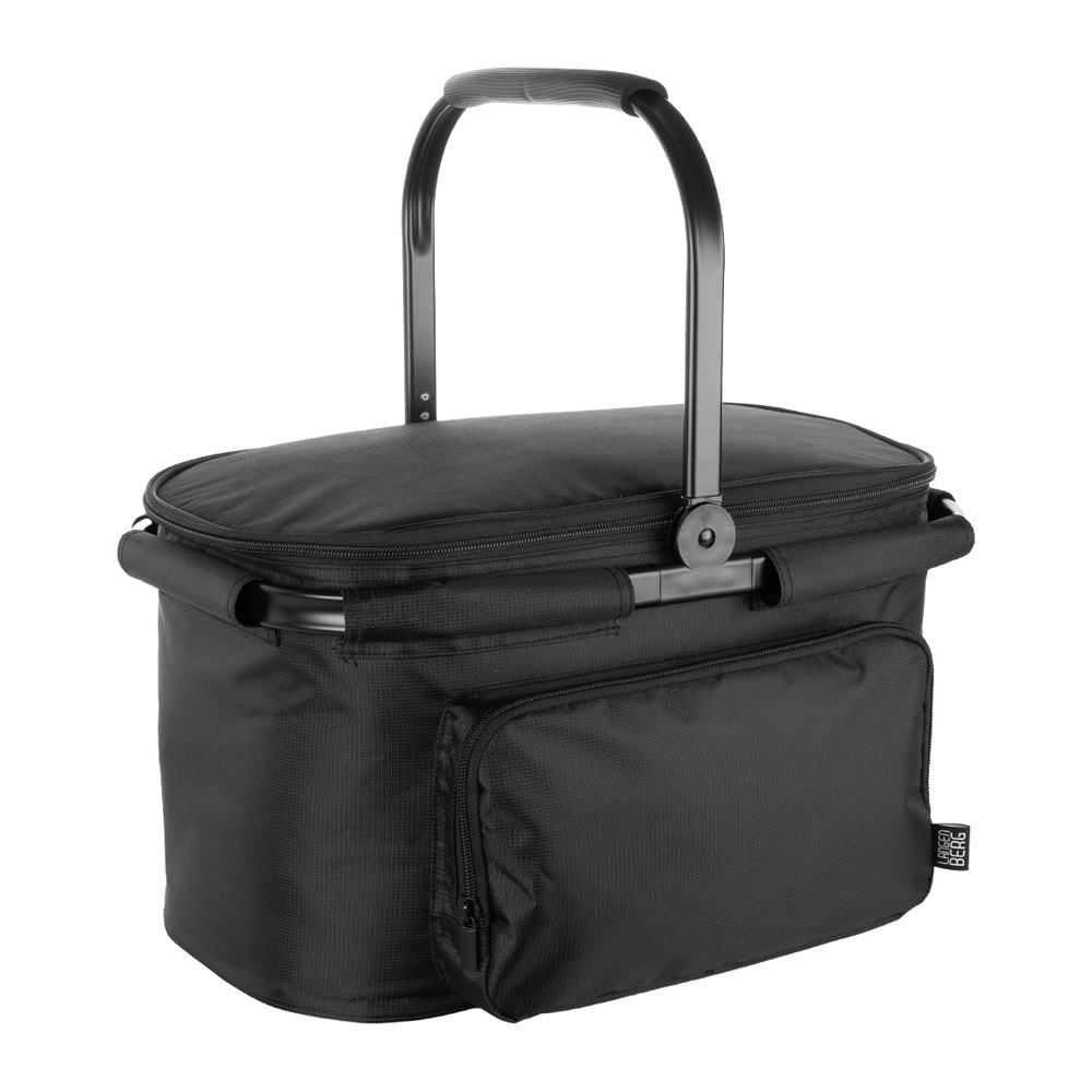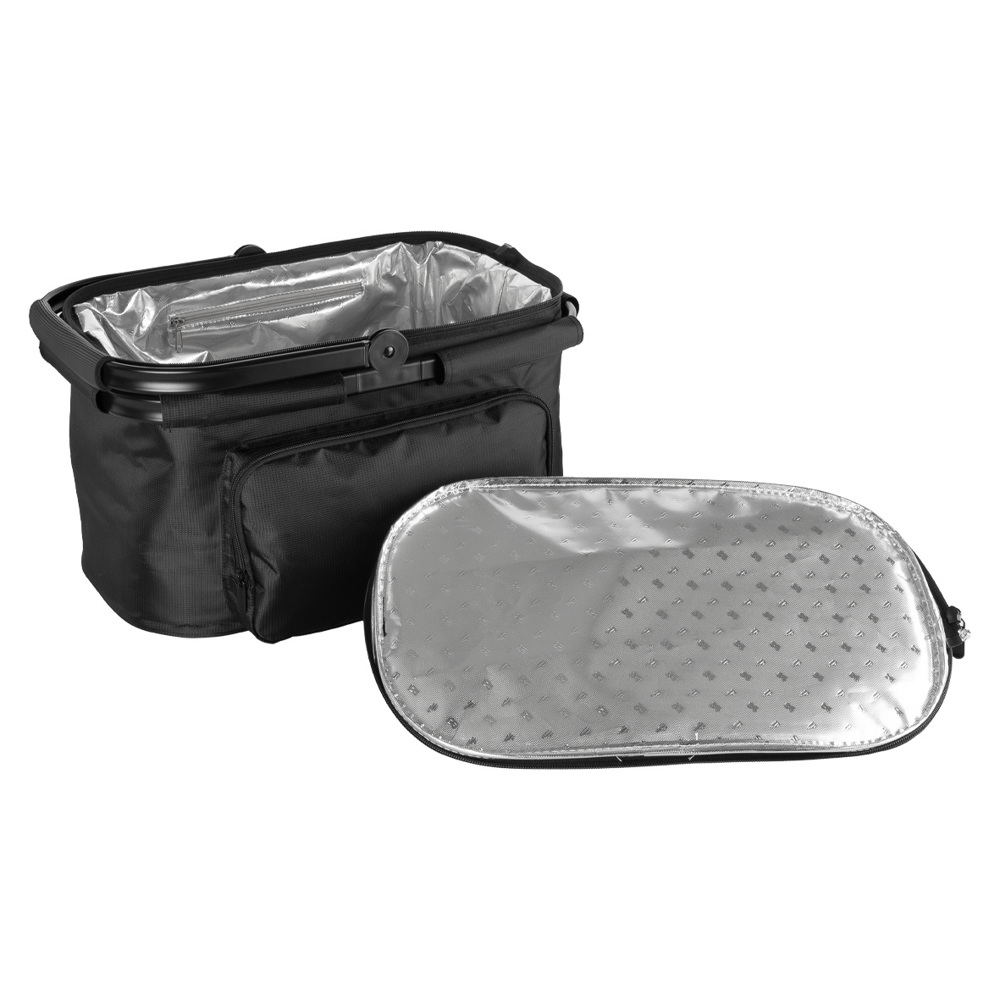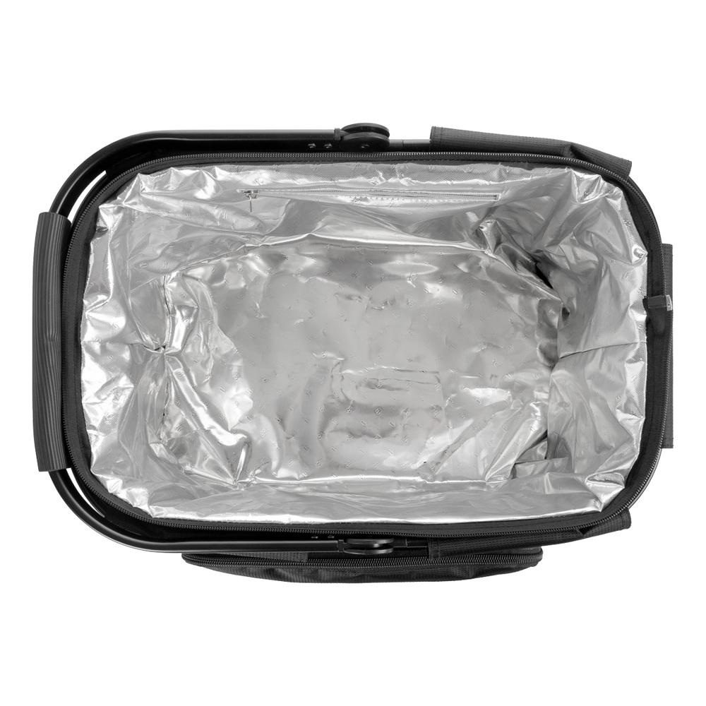 Dieser geräumige Einkaufskorb überzeugt mit einem leichten, robusten Aluminium-Rahmen und einem klappbaren Tragebügel mit Gummipolster für maximalen Komfort. Der Deckel mit Rundum-Reißverschluss schützt den Inhalt zuverlässig, während der verstärkte Boden mit Bodennägeln für Stabilität sorgt – auch bei schwererer Beladung. Praktische Extras wie die Reißverschluss-Vortasche und eine Innentasche bieten zusätzlichen Stauraum. Mit einem Volumen von ca. 29 Litern ist dieser Korb der ideale Begleiter für Einkauf, Picknick oder Ausflug.