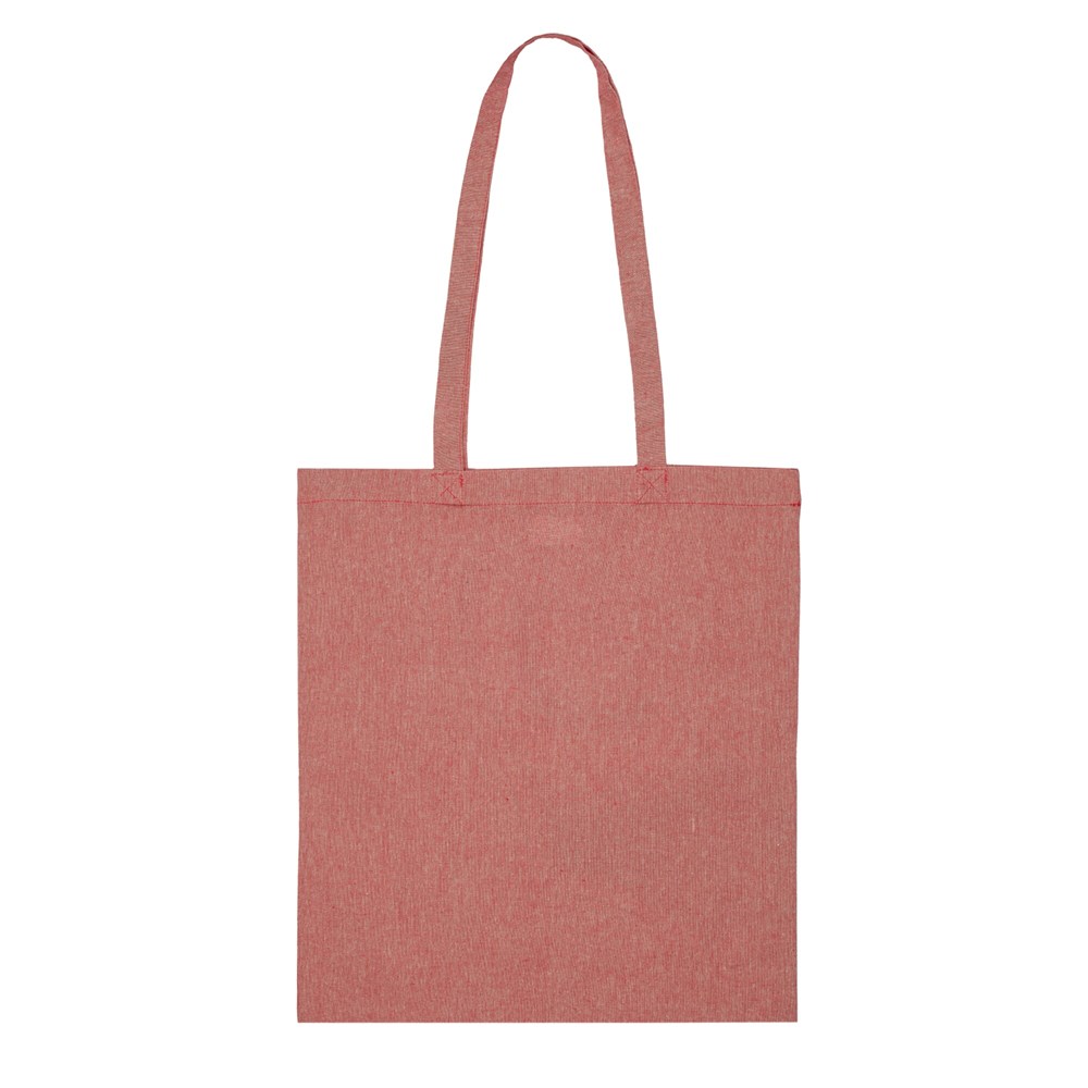 Umhängetasche aus recycelter Baumwolle. Die verschiedenen Quellen des Materials verleihen dem Stoff ein einzigartiges Aussehen und Gefühl. Leichte Farbabweichungen sind unvermeidlich und ein echtes Zeichen für die recycelte Beschaffenheit dieser Tasche.