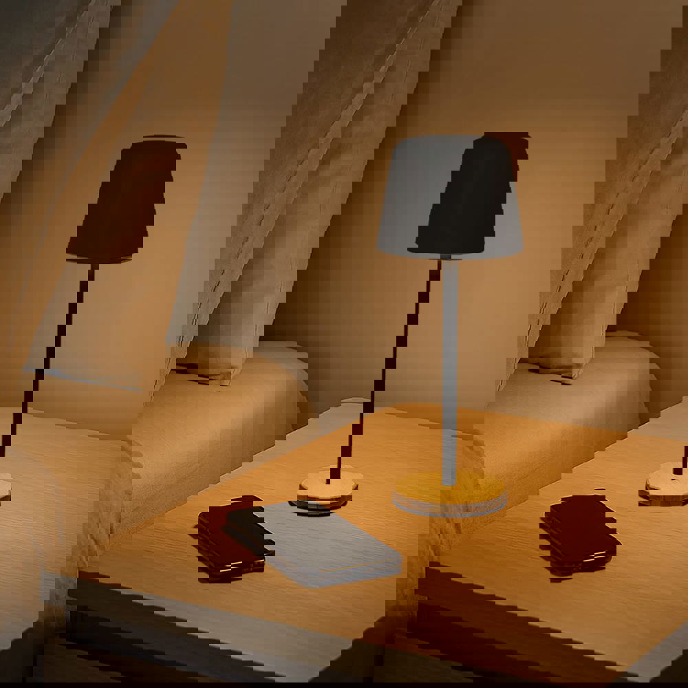 Die Solis Tischlampe ist vollständig dimmbar und bietet drei vielseitige Lichtmodi: kaltes Licht, warmes Licht und natürliches Licht. Mit einem integrierten 1.200-mAh-Akku genießen Sie 6 Stunden Beleuchtung. Das Aufladen erfolgt einfach und schnell über das mitgelieferte USB-C-Kabel, danach ist die Lampe in nur 3 Stunden wieder voll einsatzbereit.
